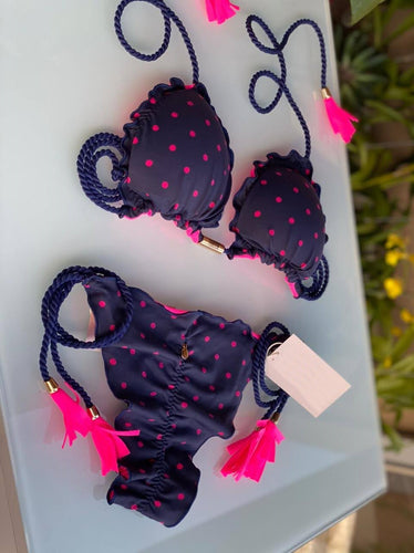 Polka Dot Triangle Bikini | Pink and Dark Blue