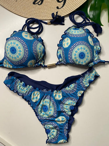 Brazilian Triangle Bikini | Tie Side Bikini Bottom | Double Side | Turquoise and Blue