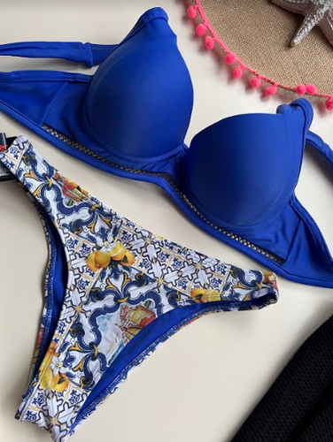 Hot Pant Bikini Bottom | Enhancer Bikini Top | Blue Printed